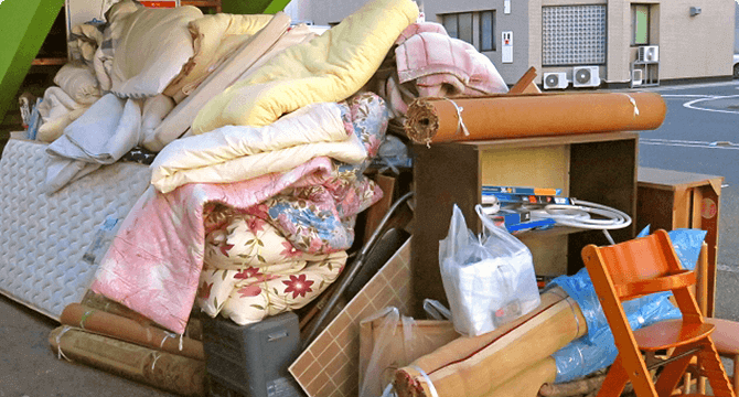 普段のお掃除で発生した小さい不用品から、大掃除で発生した重たい粗大ゴミまであらゆる品種、量の不用品回収に対応します。